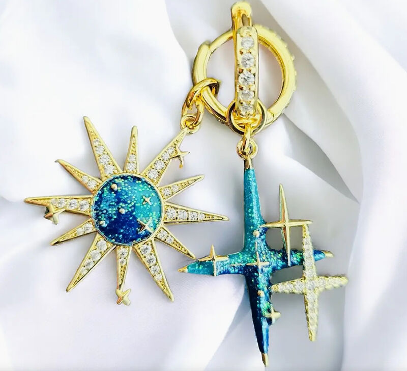 MISMATCHED HOOP EARRINGS GLITTER SUN AND STAR