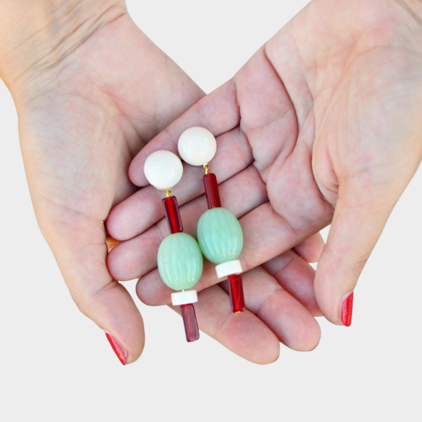 PRAGUE PENDANT EARRINGS IVORY, BURGUNDY & GREEN