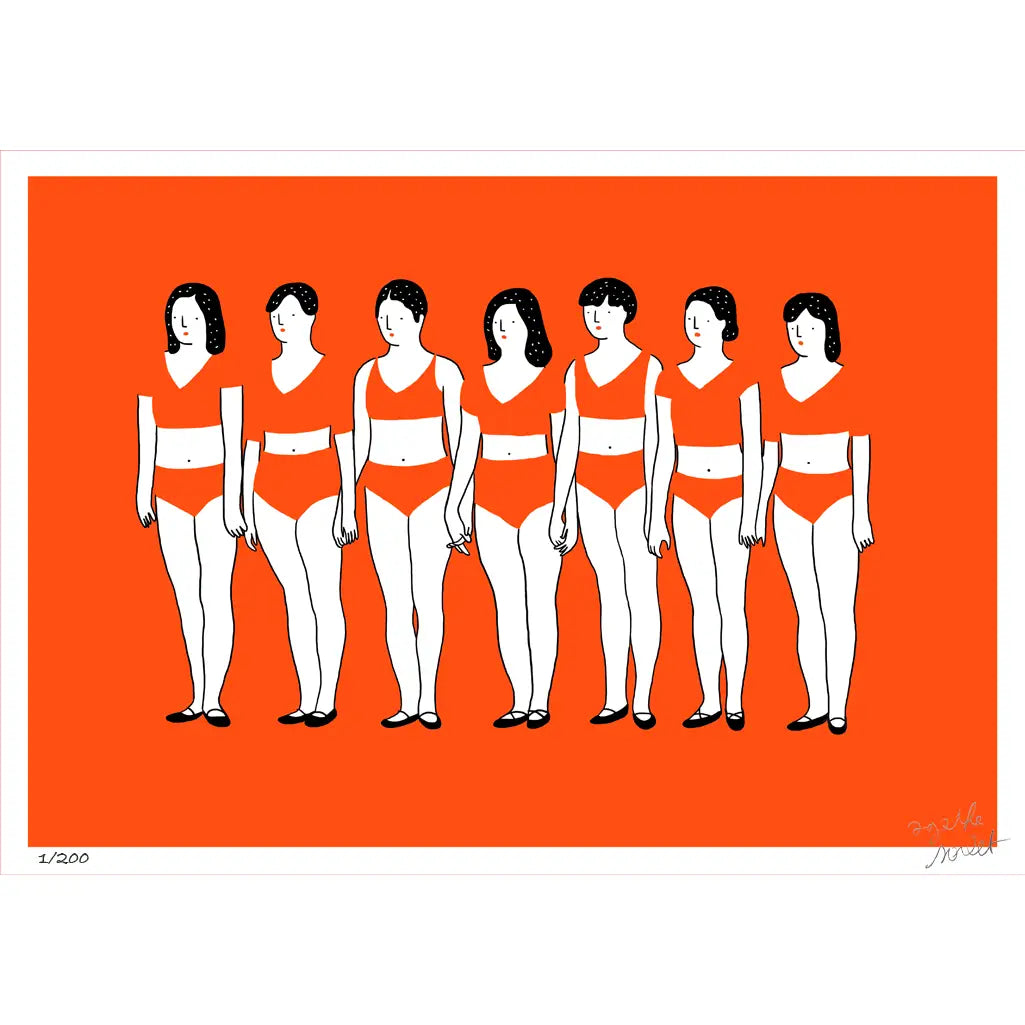 When your girl gang is serving serious vintage vibes and body confidence! This iconic lineup is giving us all the retro beach party energy we didn't know we needed. Limited edition of 200 units giglée print by Agathe Sorlet.