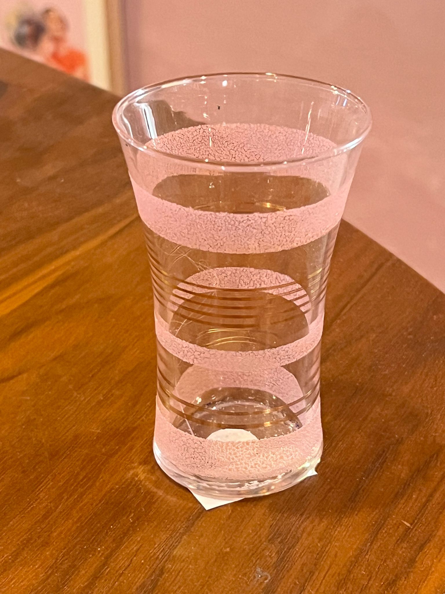 SINLE GLASS TUMBLER WITH FROSTED PINK AND GOLD ACCENTS
