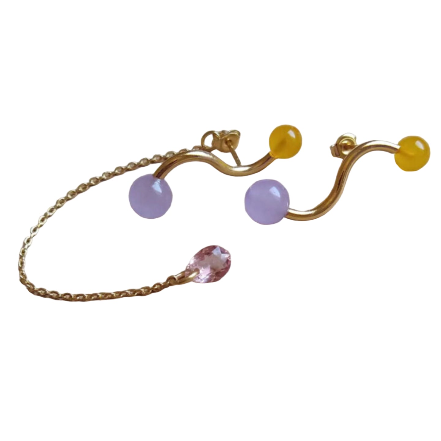 SOFT WAVE ASYMMETRIC PINK CRYSTAL EARRINGS